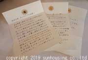 新築 K様邸家づくりへの思い、サンハウジングへの思いがたくさん詰まったお手紙を頂きました。 |