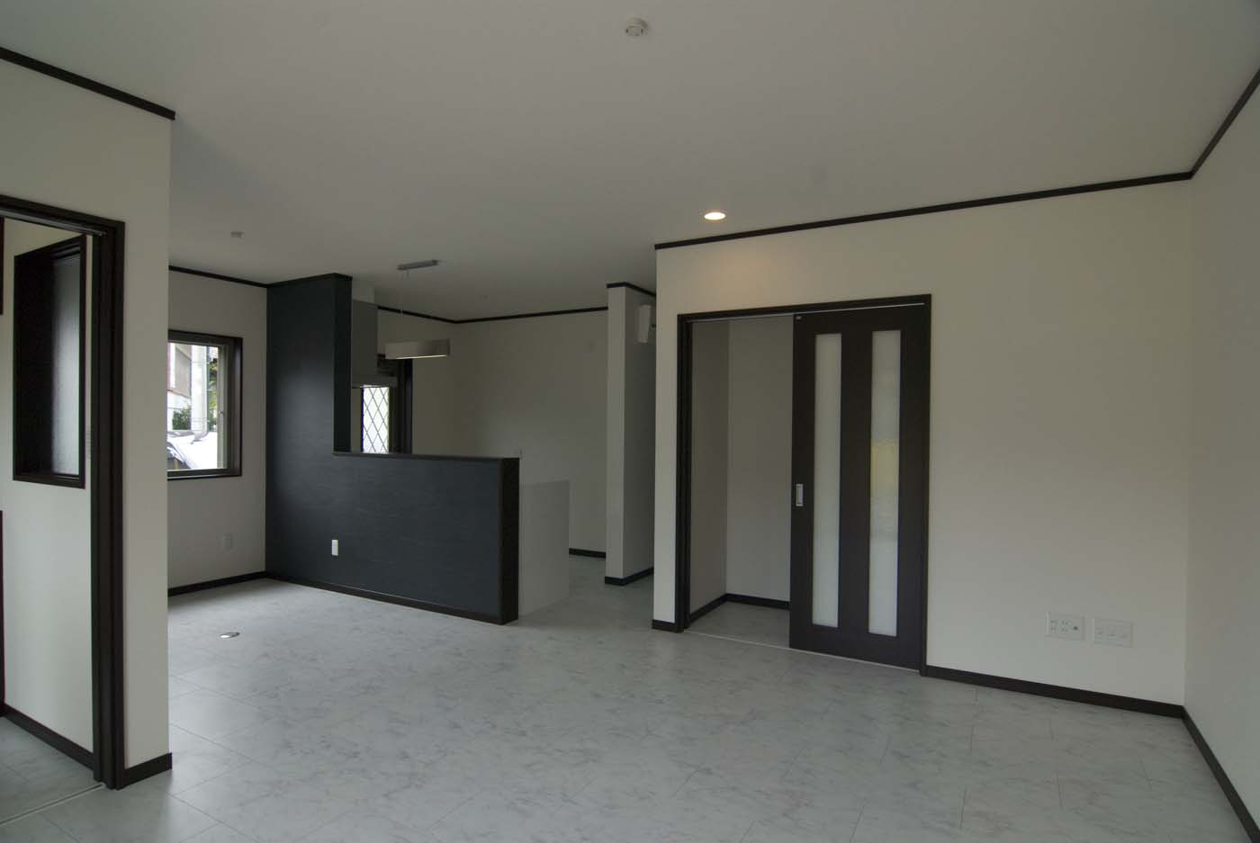 ホワイト×ダークブラウンのコントラストでリビングを演出