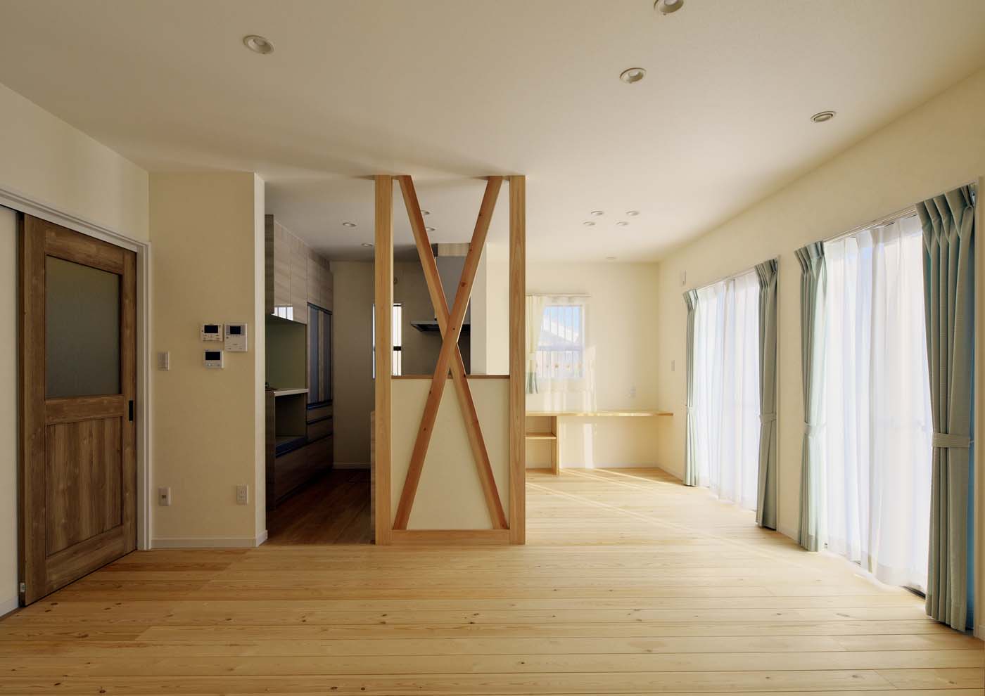 桧の無垢床が優しいダイニングルームの印象を与えます