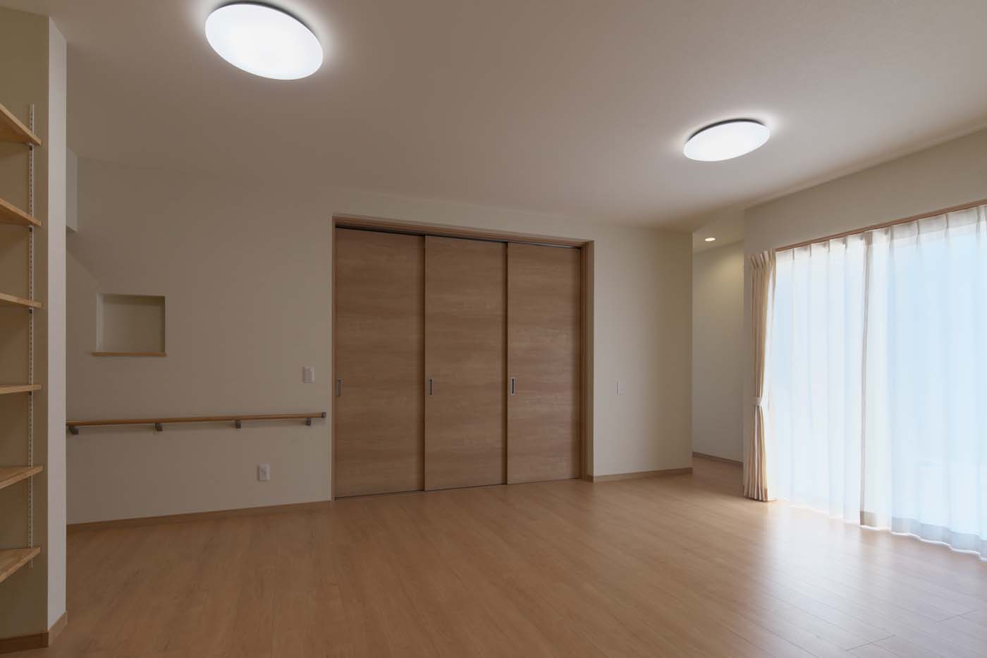 キッチンへの引き戸はカウンターに合わせて造作しました